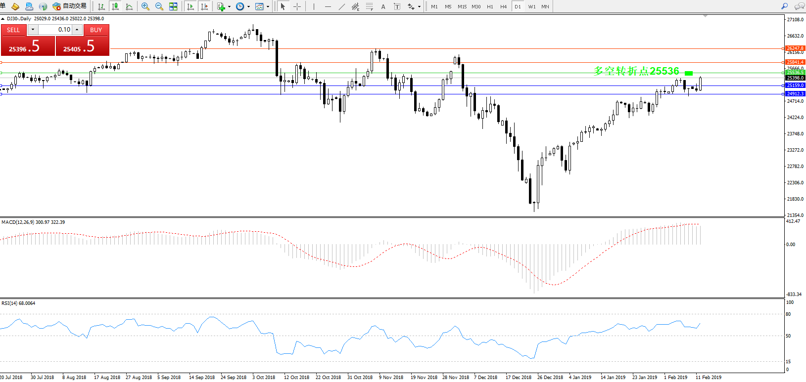 道琼斯指数DJ30—— 日K线图显示: