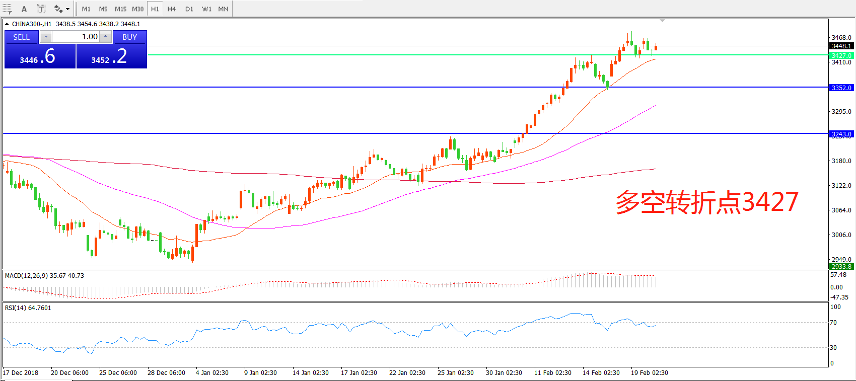 小时图看,CHINA300中华指数冲高后小幅回落。但整体依然位于支撑之上。均线系统呈多头排列, MACD红柱走平,整体维持偏多思路。