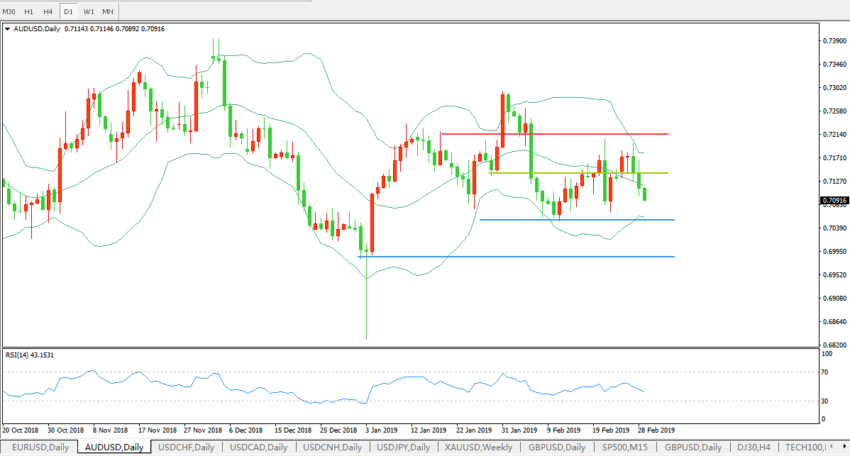 交易策略:在0.7145之下,看跌,目标价位为0.7045,然后为0.6990。
