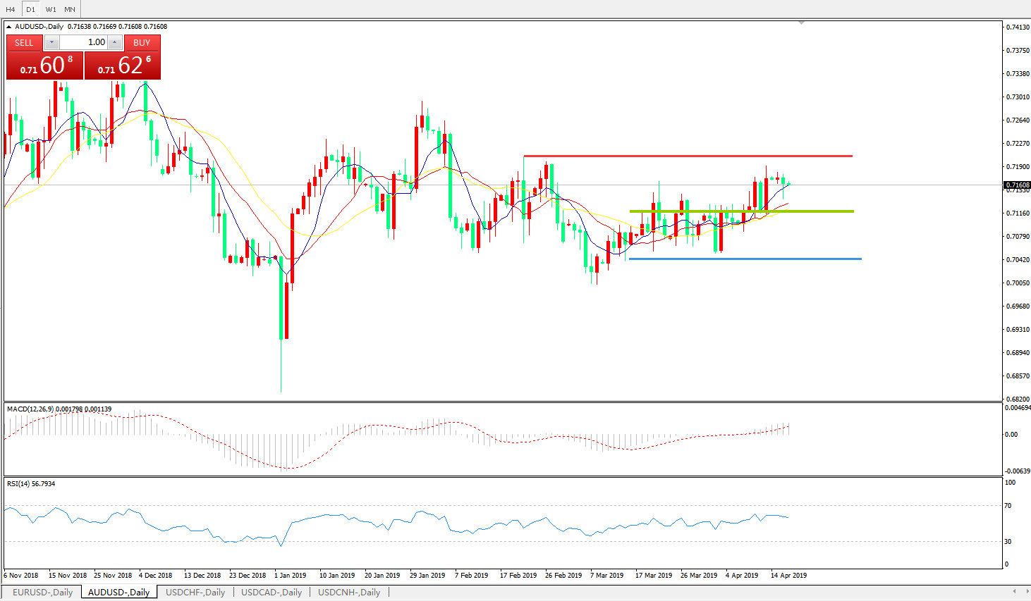 澳洲联储会议纪要鸽派短暂施压了澳元,但澳元多头趋势仍然明显,鸽派的纪要给出投资者买入机会。澳洲联储降息预期对澳元仅仅是短暂施压,影响澳元走势的是中国市场的情绪,而目前中国市场风险偏好情绪较强,这将继续支撑澳元。日内澳美方面的注意力必须投放到中国地区经济数据,将公布的GDP、零售销售和工业产出数据。澳元在过去两个月持续在0.7200-0.7000区域震荡交投;如果数据意外乐观,则澳元或升向0.72区域伴有突破的可能,中美贸易的乐观预期仍持续的背景下