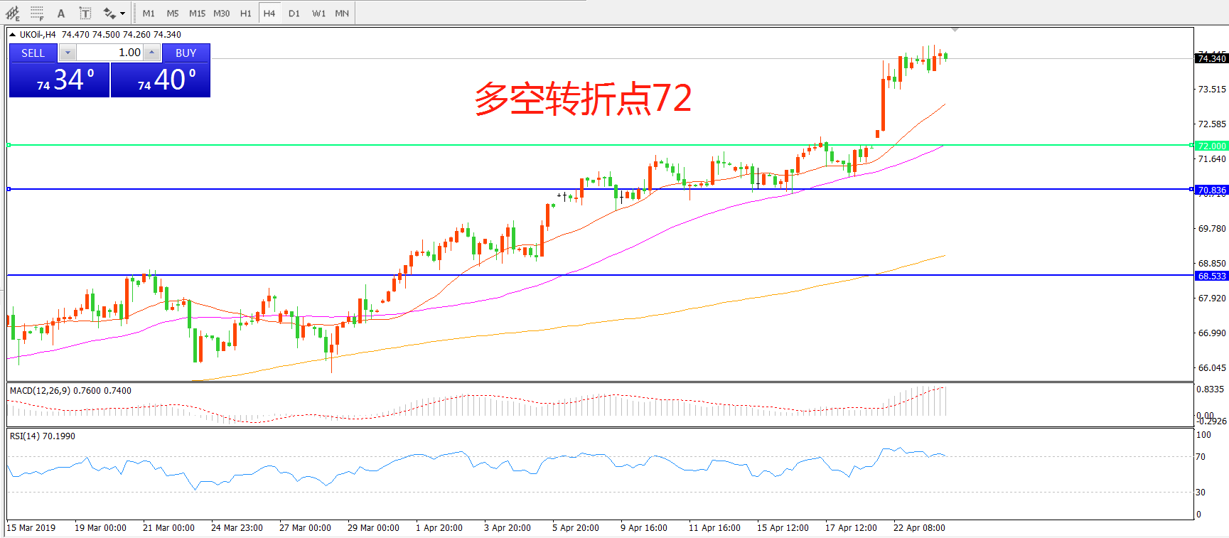 交易策略:在72.00之上看涨,目标75.50 80.00