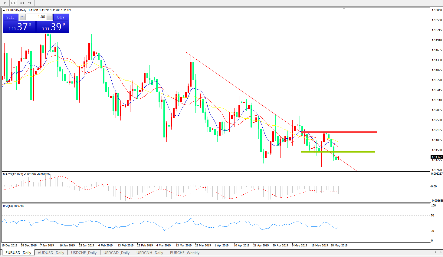 交易策略:在1.1150之下,看跌,目标价位为 1.1100,然后为1 .1030。