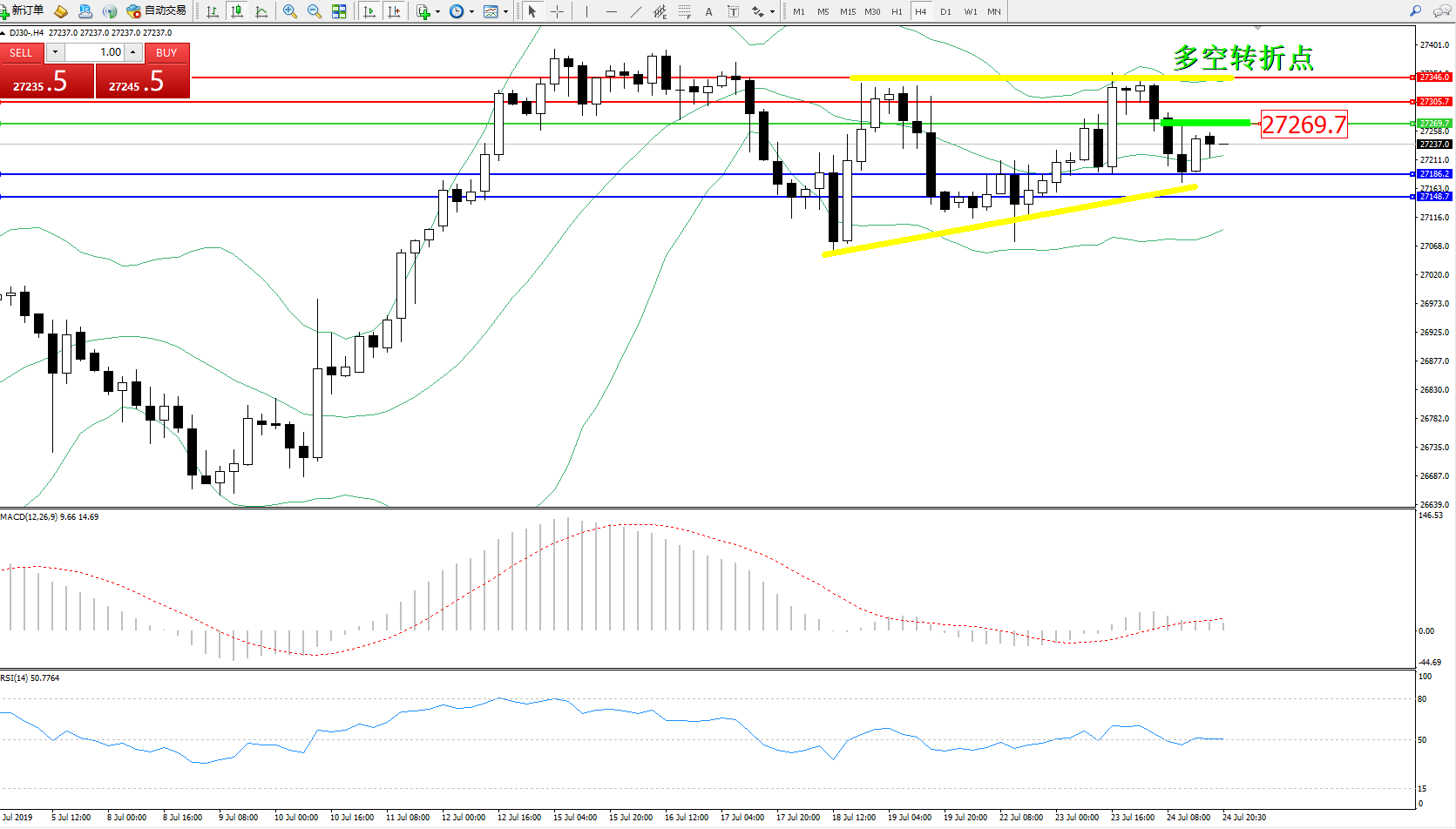 道琼斯指数724日(周三)收盘下跌79.20点,跌幅0.29%,报27269.97点。鉴于投资者已经完全计入了美联储的降息预期,因此在美联储下周会议并不同时发布“点阵图”的背景下,按预期降息的决定已不会对美元汇价带来太多的即刻负面影响,除非美联储果真能够大手笔一次降息50基点。