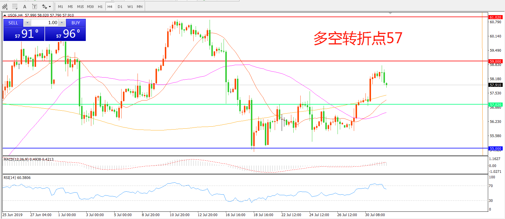 交易策略:在57.00之上看涨,目标59.00 61.00