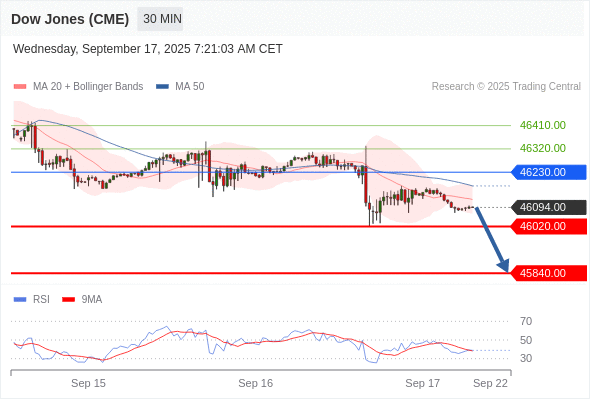 在 46230.00 之下,看跌,目标价位为 46020.00 ,然后为 45840.00 。