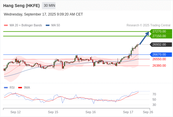 香港恒生指数期货 当日内: 目标位为27270.00。