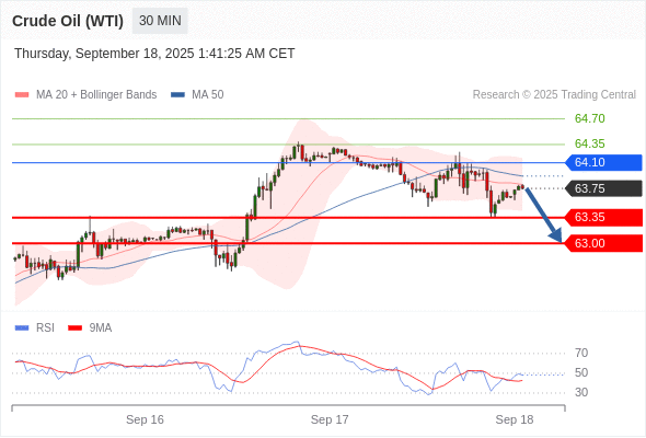 交易策略: 在 64.10 之下,看跌,目标价位为 63.35 ,然后为 63.00 。