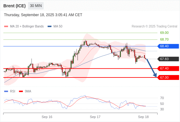 交易策略: 在 68.40 之下,看跌,目标价位为 67.40 ,然后为 67.00 。