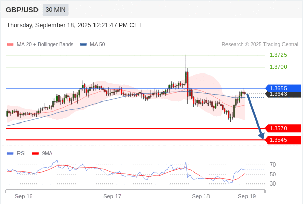 在 1.3655 之下,看跌,目标价位为 1.3570 ,然后为 1.3545 。
