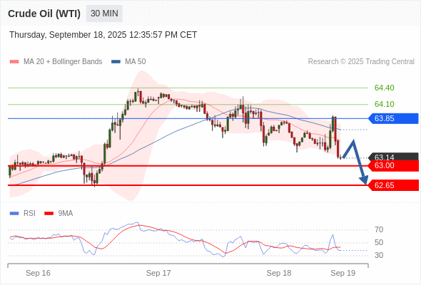 交易策略: 在 63.85 之下,看跌,目标价位为 63.00 ,然后为 62.65 。