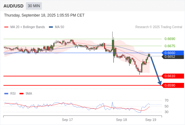 在 0.6660 之下,看跌,目标价位为 0.6610 ,然后为 0.6590 。