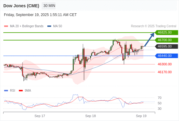 在 46440.00 之上,看涨,目标价位为 46700.00 ,然后为 46825.00 。