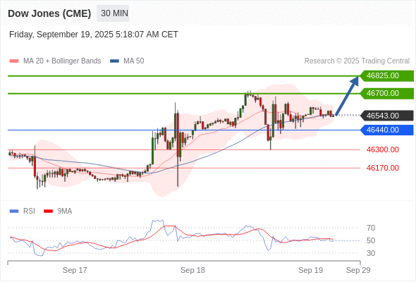 在 46440.00 之上,看涨,目标价位为 46700.00 ,然后为 46825.00 。