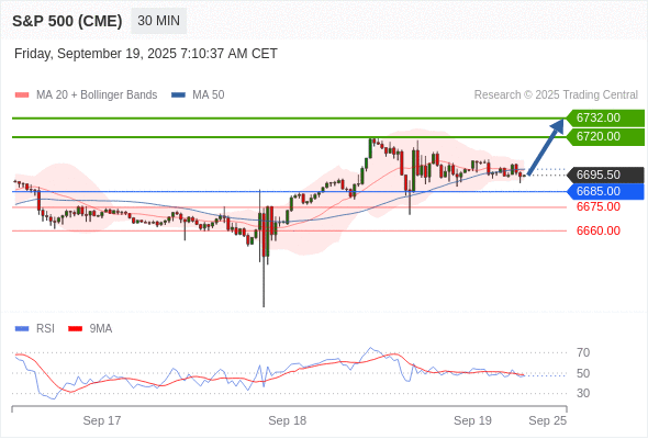 交易策略: 在 6685.00 之上,看涨,目标价位为 6720.00 ,然后为 6732.00 。