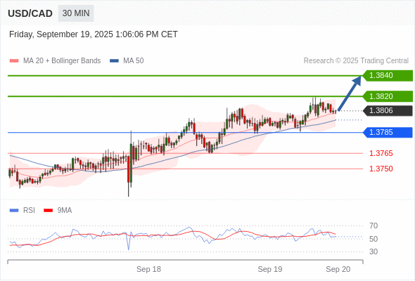 在 1.3785 之上,看涨,目标价位为 1.3820 ,然后为 1.3840 。