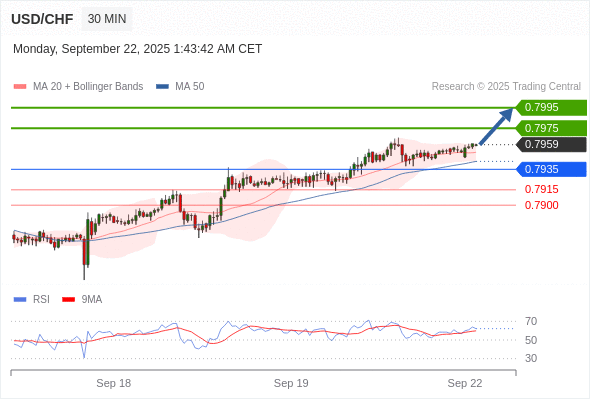 在 0.7935 之上,看涨,目标价位为 0.7975 ,然后为 0.7995 。