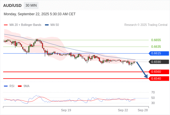 在 0.6615 之下,看跌,目标价位为 0.6560 ,然后为 0.6540 。