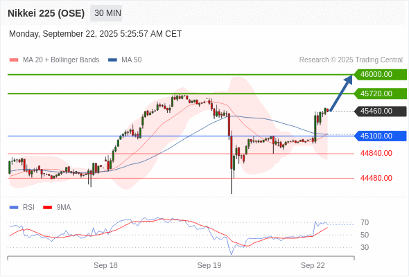 在 45100.00 之上,看涨,目标价位为 45720.00 ,然后为 46000.00 。
