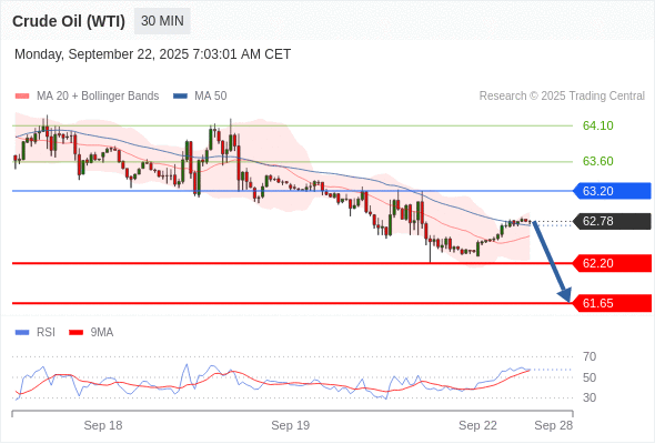 在 63.20 之下,看跌,目标价位为 62.20 ,然后为 61.65 。