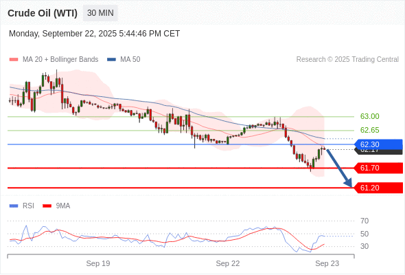 交易策略: 在 62.30 之下,看跌,目标价位为 61.70 ,然后为 61.20 。