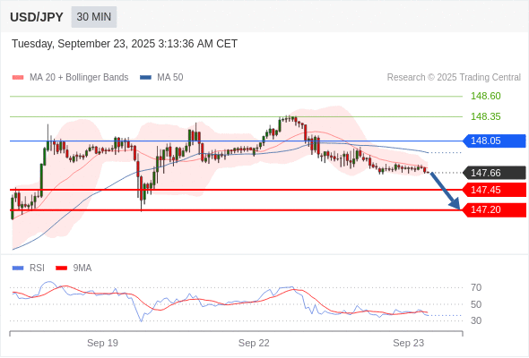 在 148.05 之下,看跌,目标价位为 147.45 ,然后为 147.20 。