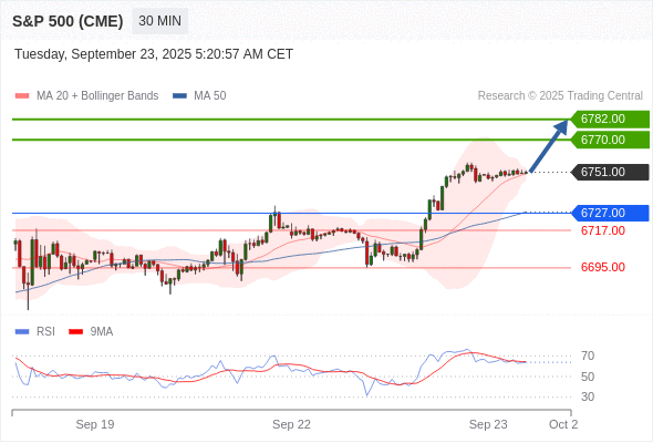 在 6727.00 之上,看涨,目标价位为 6770.00 ,然后为 6782.00 。
