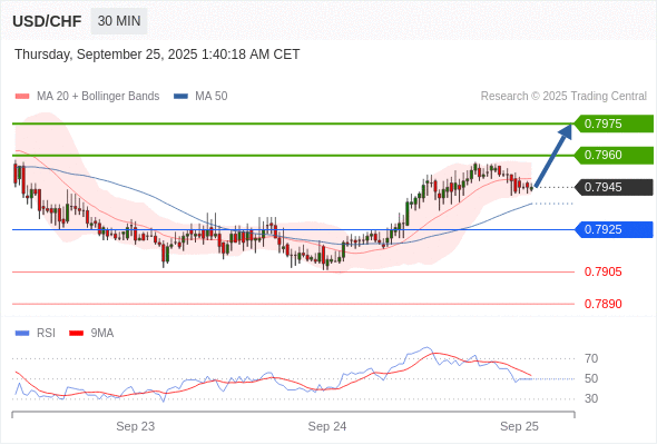 在 0.7925 之上,看涨,目标价位为 0.7960 ,然后为 0.7975 。