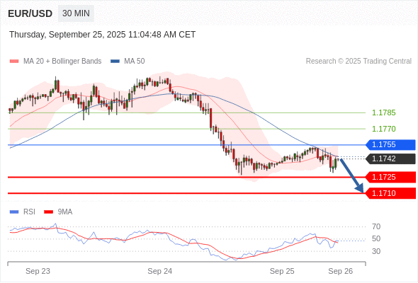 欧元/美元 当日内: 短期关键阻力位在1.1755。