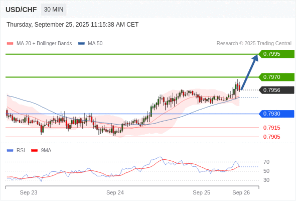 在 0.7930 之上,看涨,目标价位为 0.7970 ,然后为 0.7995 。