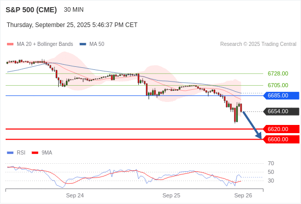 在 6685.00 之下,看跌,目标价位为 6620.00 ,然后为 6600.00 。