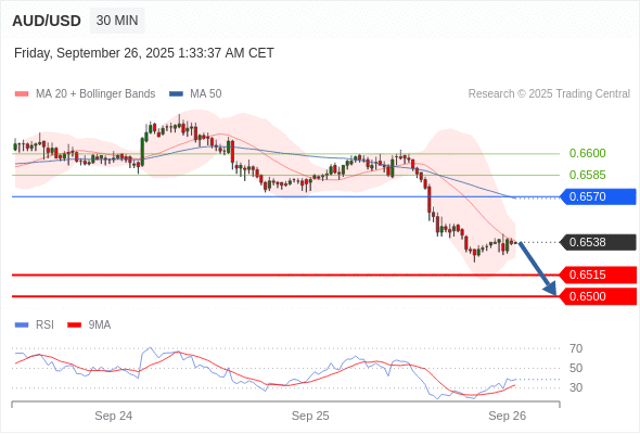 在 0.6570 之下,看跌,目标价位为 0.6515 ,然后为 0.6500 。