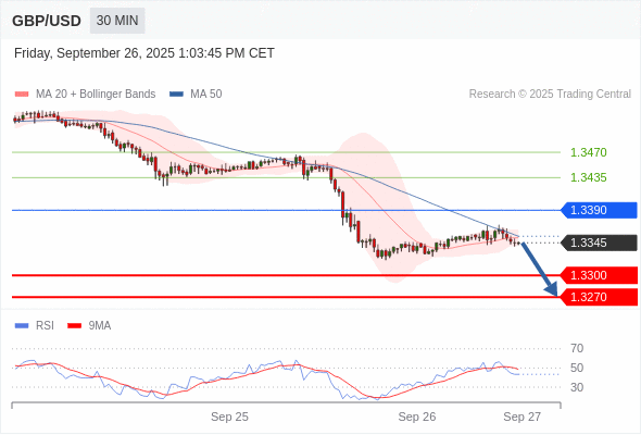 交易策略: 在 1.3390 之下,看跌,目标价位为 1.3300 ,然后为 1.3270 。
