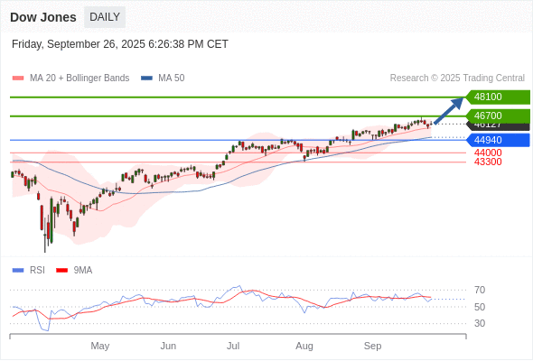 Dow Jones 短线: 在44940之上,看涨。