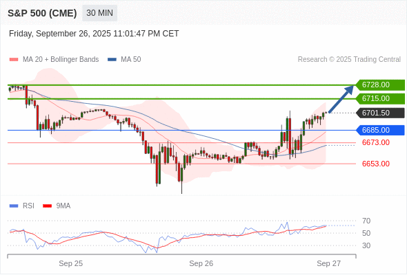 在 6685.00 之上,看涨,目标价位为 6715.00 ,然后为 6728.00 。