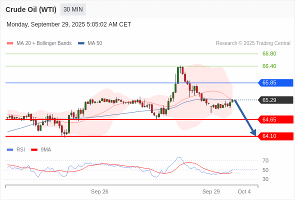 在 65.85 之下,看跌,目标价位为 64.65 ,然后为 64.10 。