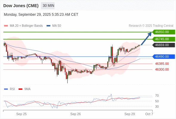 在 46490.00 之上,看涨,目标价位为 46745.00 ,然后为 46850.00 。