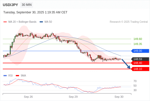 在 149.00 之下,看跌,目标价位为 148.40 ,然后为 148.10 。