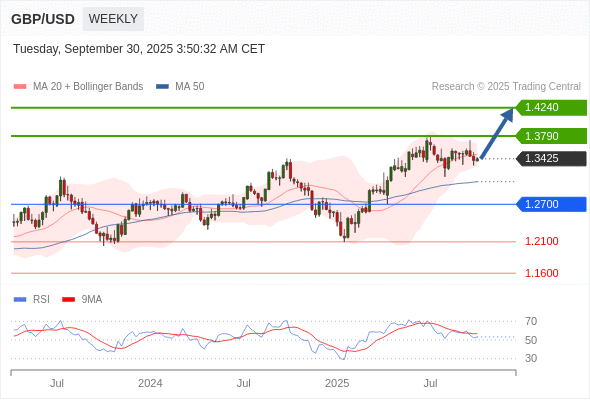 在 1.2700 之上,看涨,目标价位为 1.3790 ,然后为 1.4240 。