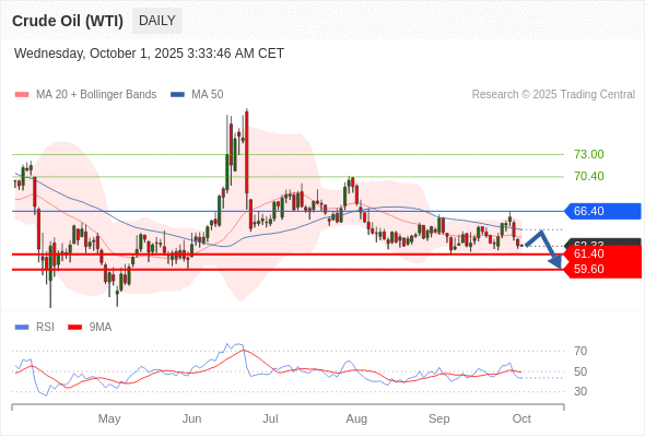 在 66.40 之下,看跌,目标价位为 61.40 ,然后为 59.60 。