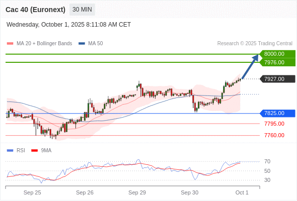 在 7825.00 之上,看涨,目标价位为 7976.00 ,然后为 8000.00 。