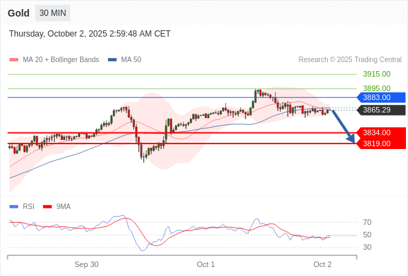 在 3883.00 之下,看跌,目标价位为 3834.00 ,然后为 3819.00 。
