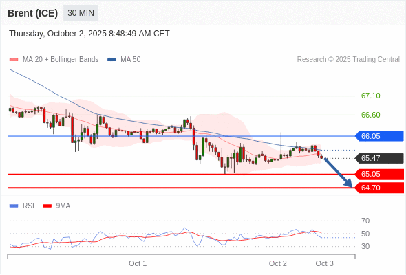 在 66.05 之下,看跌,目标价位为 65.05 ,然后为 64.70 。