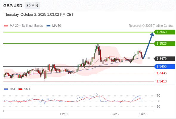 在 1.3455 之上,看涨,目标价位为 1.3525 ,然后为 1.3560 。