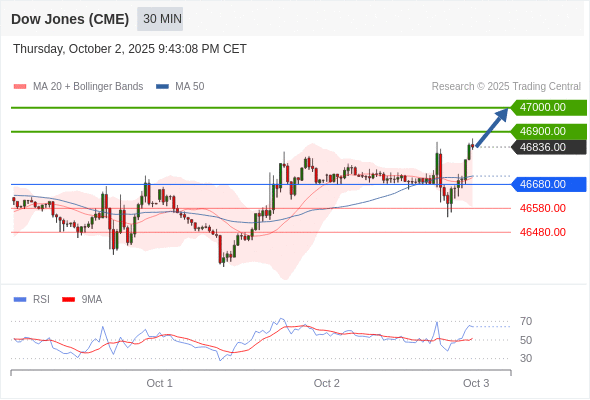 在 46680.00 之上,看涨,目标价位为 46900.00 ,然后为 47000.00 。