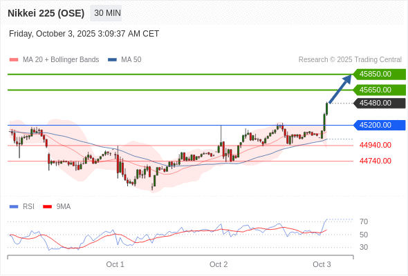 交易策略: 在 45200.00 之上,看涨,目标价位为 45650.00 ,然后为 45850.00 。
