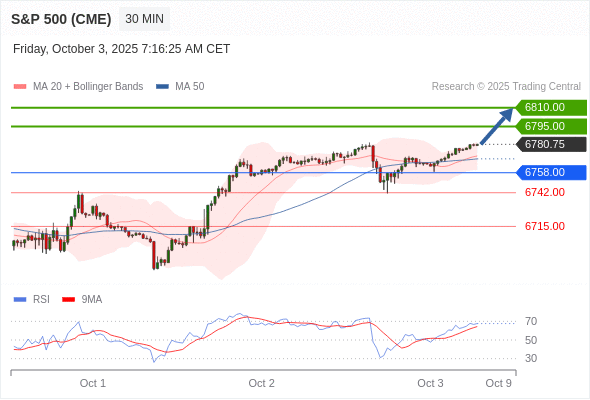 在 6758.00 之上,看涨,目标价位为 6795.00 ,然后为 6810.00 。