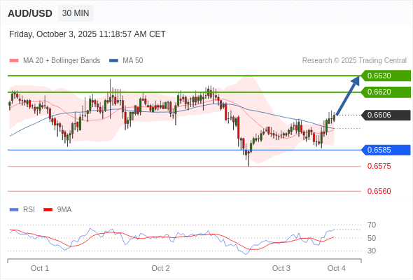 在 0.6585 之上,看涨,目标价位为 0.6620 ,然后为 0.6630 。