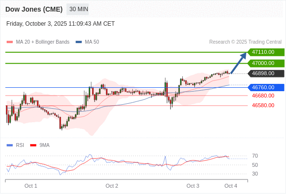 在 46760.00 之上,看涨,目标价位为 47000.00 ,然后为 47110.00 。