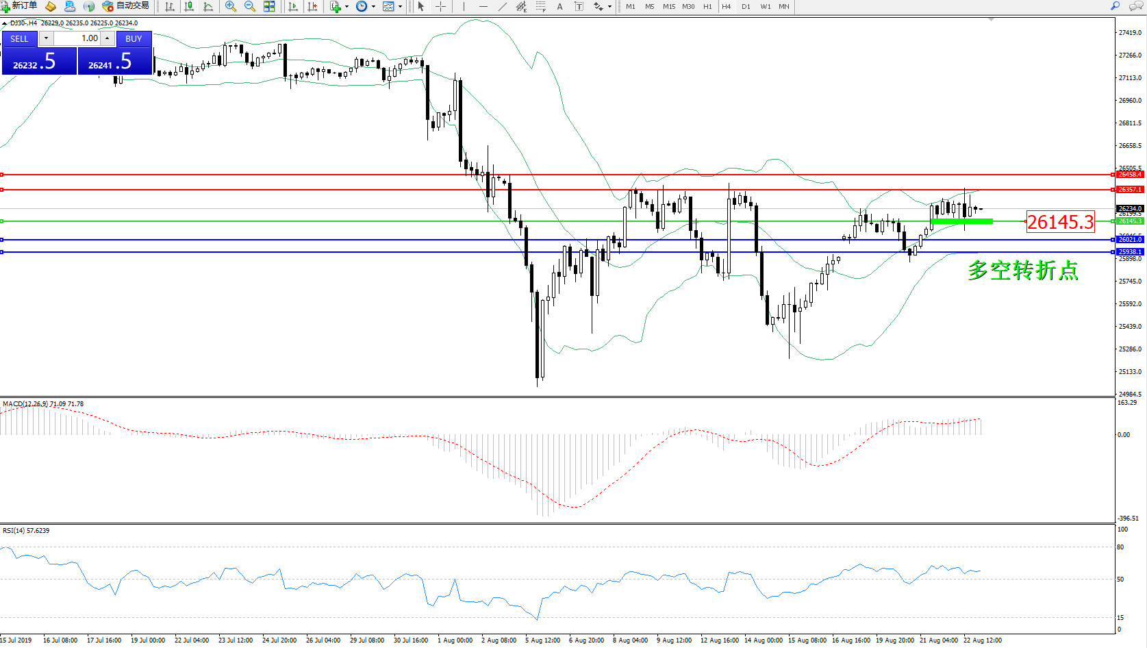 道琼斯指数822日(周四)收盘上涨49.50点,涨幅0.19%,报26252.24点。投资者等待本周怀俄明州杰克森霍尔会议上美联储可能发表的公告或声明,对不断恶化的全球经济前景作出反应。市场人士表示,美联储可能宣布一项刺激措施或重申美联储的宽松立场,鲍威尔可能会淡化降息的可能性,尽管市场已经完全消化了下个月的降息预期。鲍威尔在上次FOMC会议后的讲话中充满乐观情绪;美联储最新的会议记录证实,越来越多的人认为美国决策者不愿在未来几个月启动大规模降息周期,称7月的宽松政策是周期内的政策调整。决策者在是否降息的问题上出现分歧,但他们一致希望表明,他们没有走在进一步降息的预设道路上。