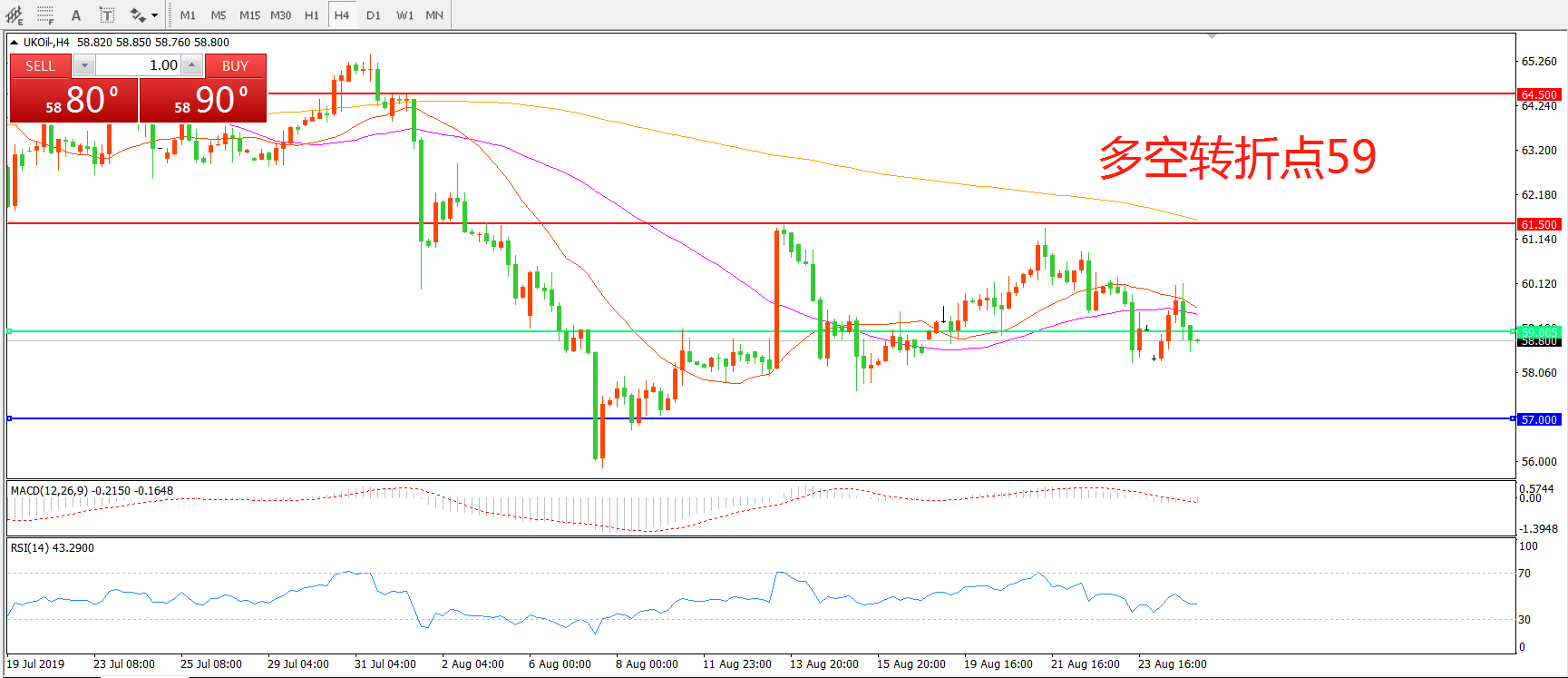 交易策略:在59.00之下看跌,目标57.00   53.00